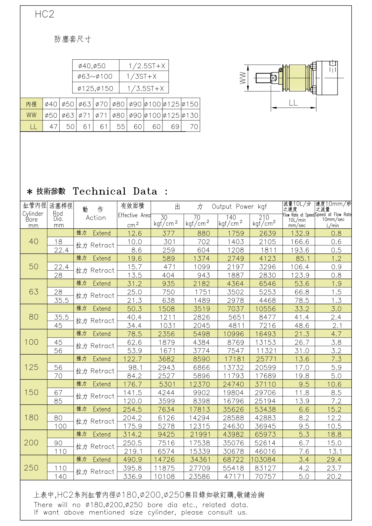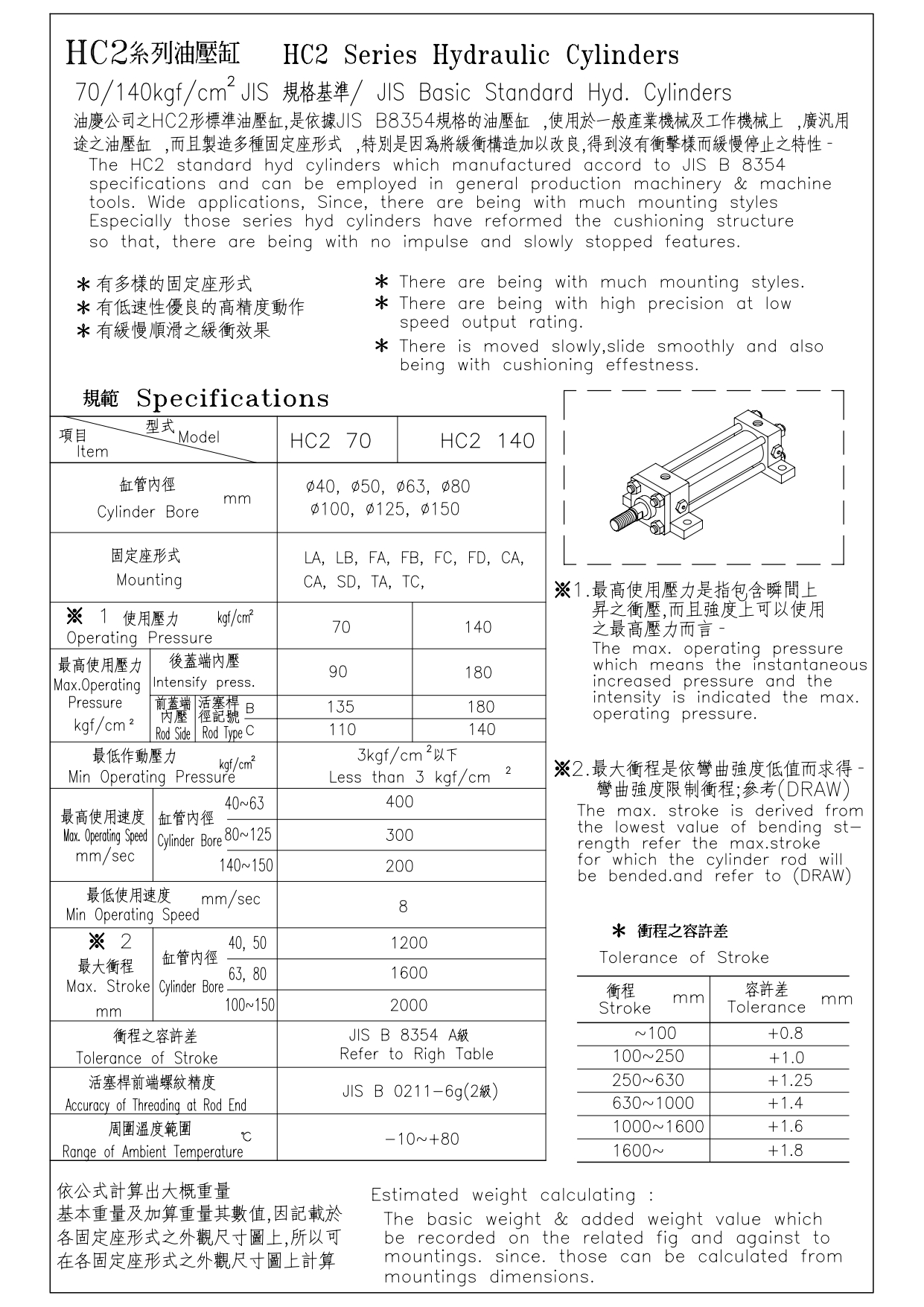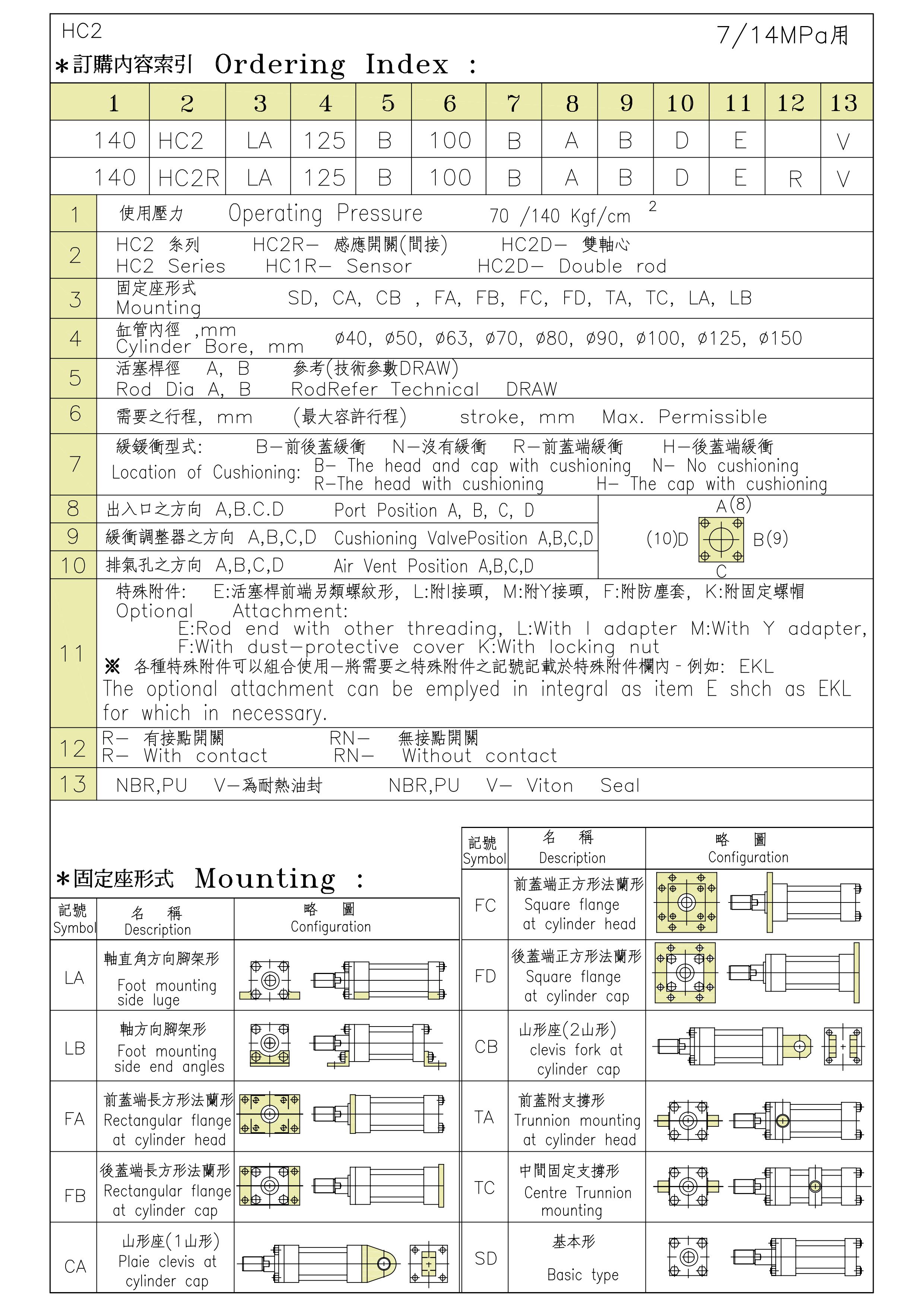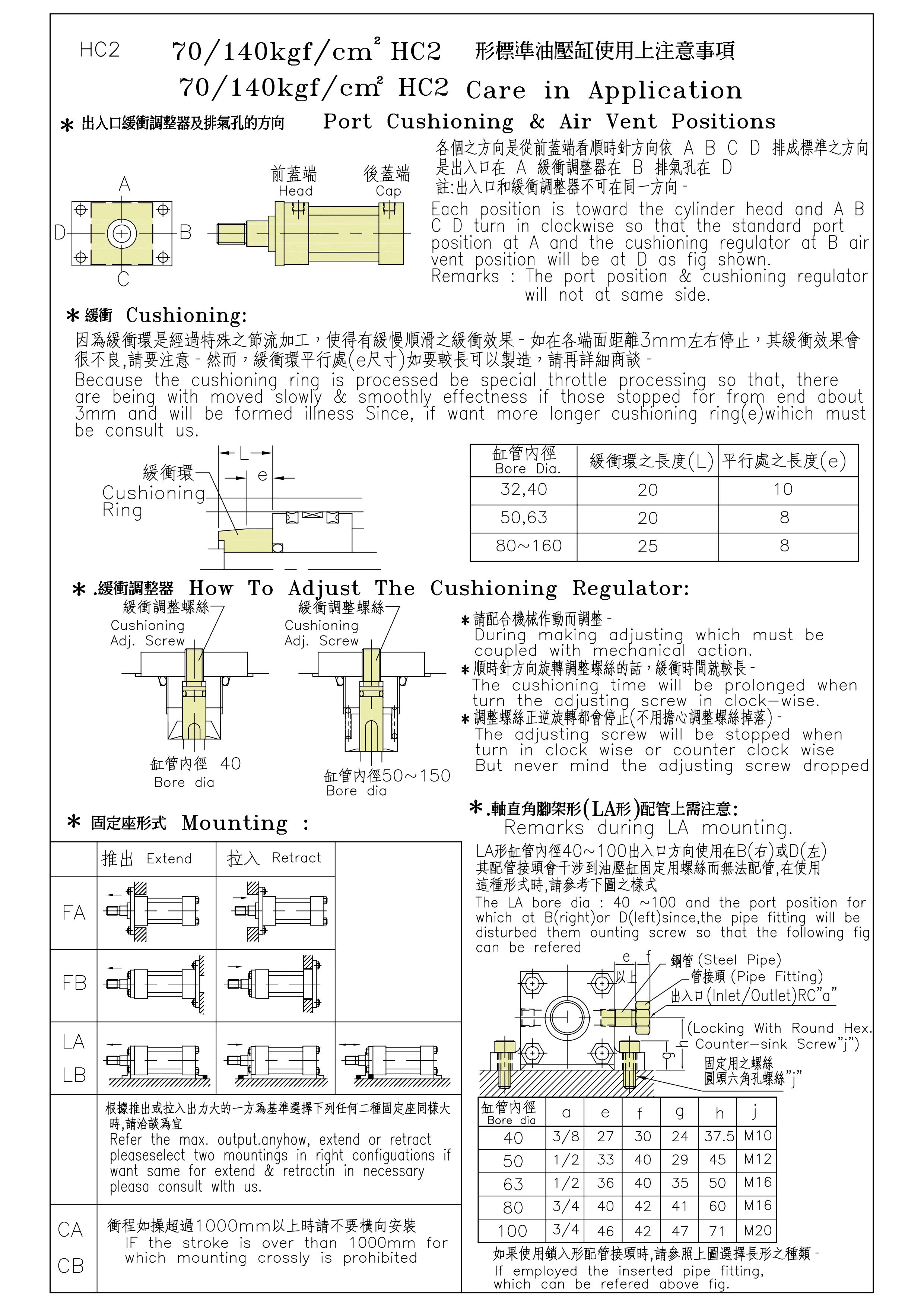 HC2為標準型油壓缸配有緩衝裝置,依據JIS B8354規格製造