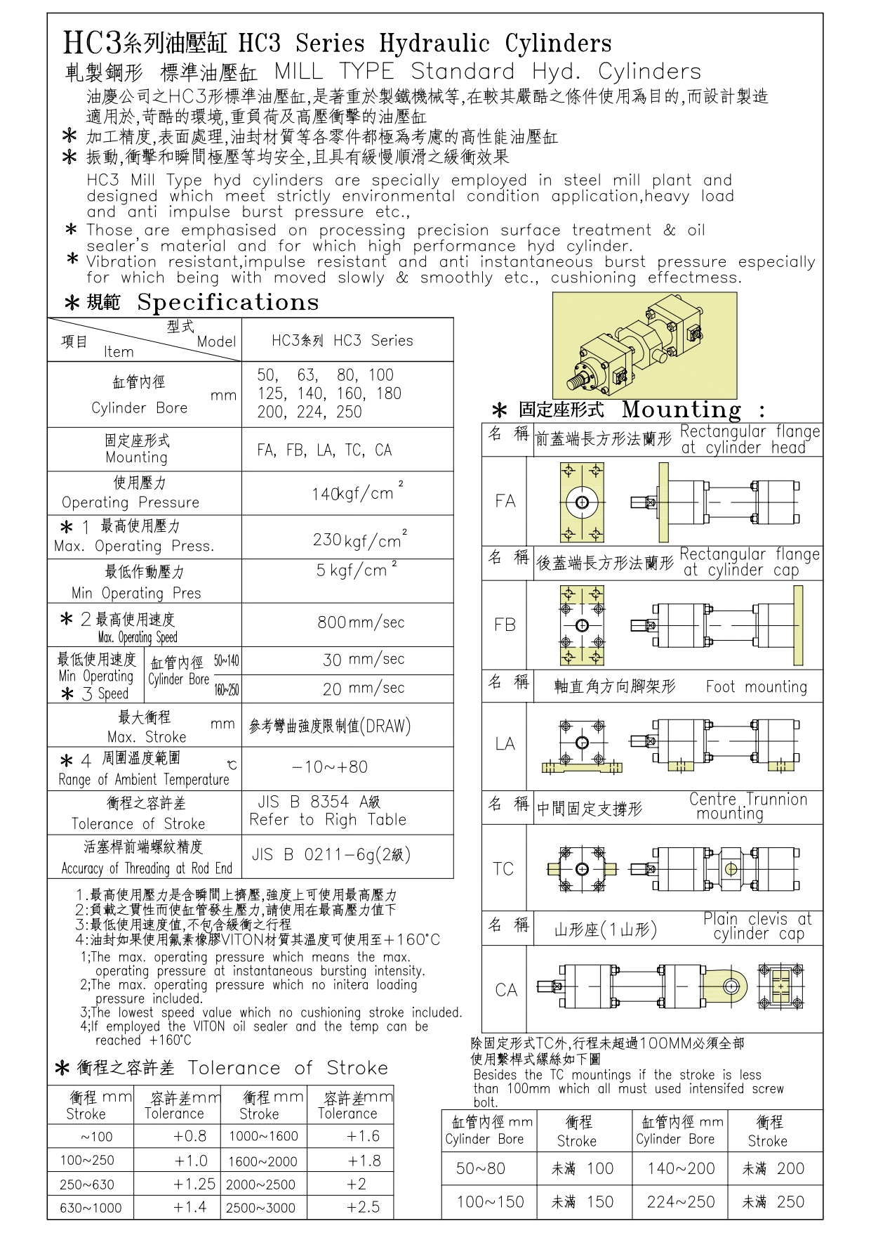 HC3為缸軋製鋼形的標準型油壓,適用高負荷高壓衝擊的環境